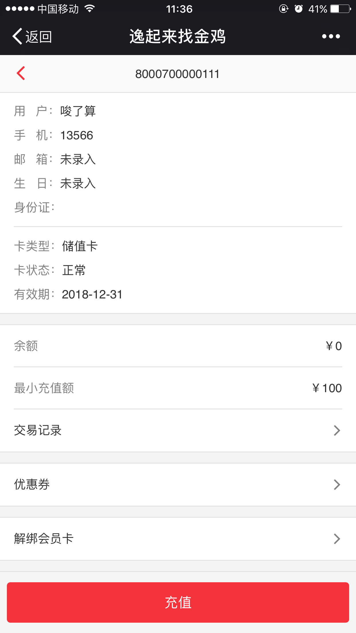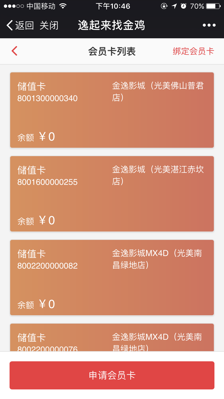 查看会员卡列表及开卡、绑卡、充值等操作。