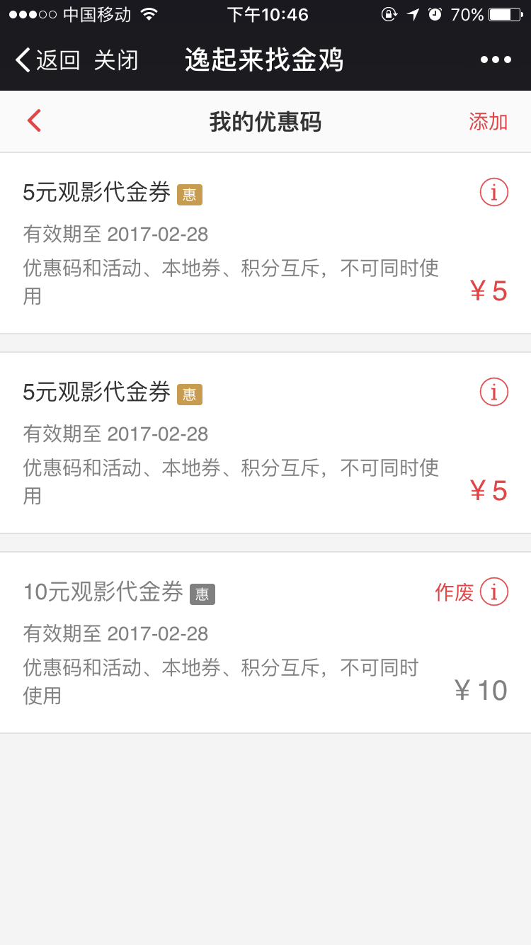 查看优惠券列表及详情。
